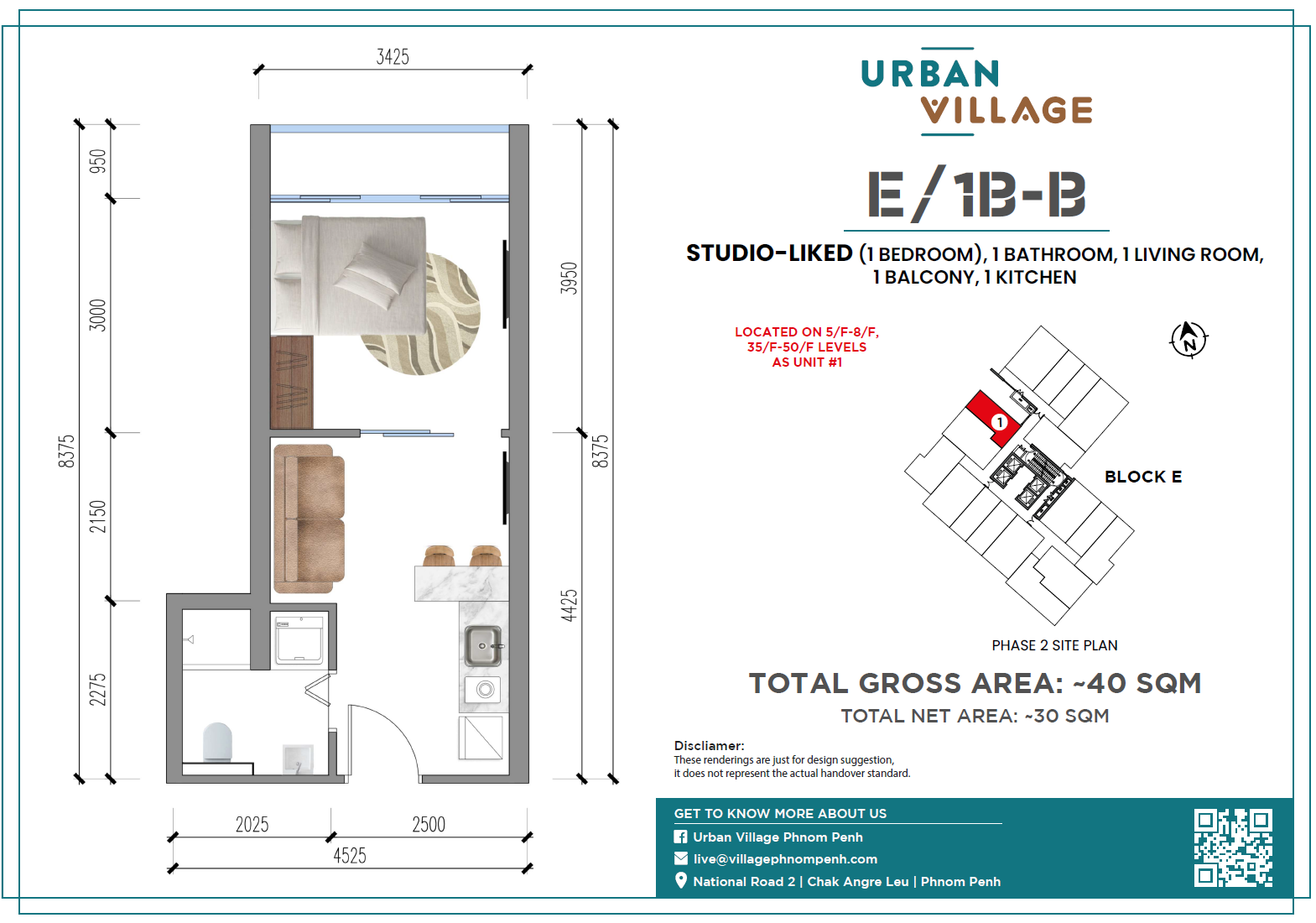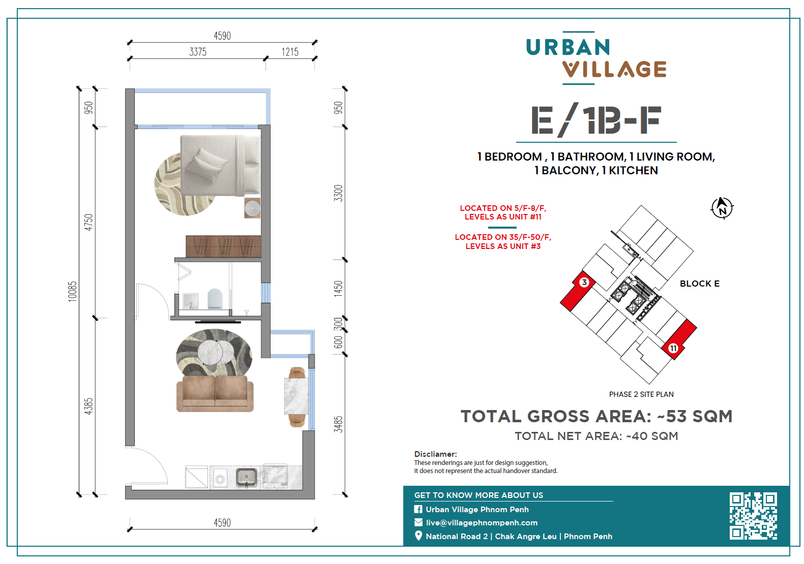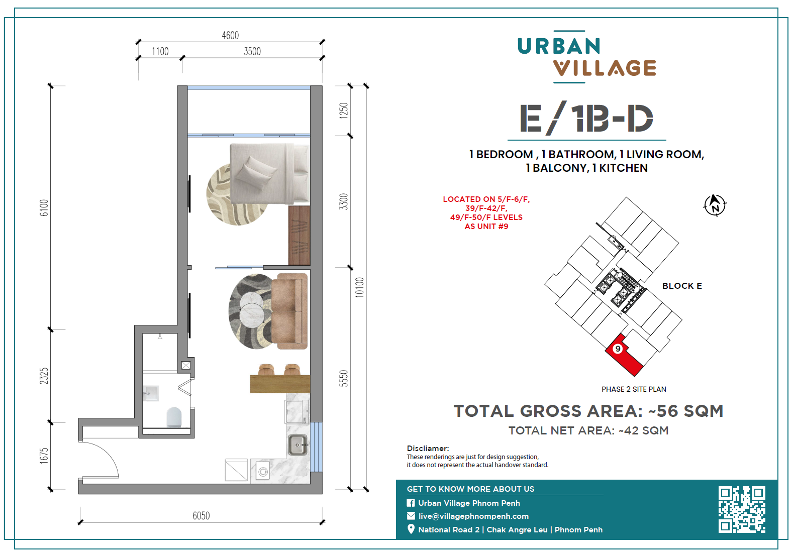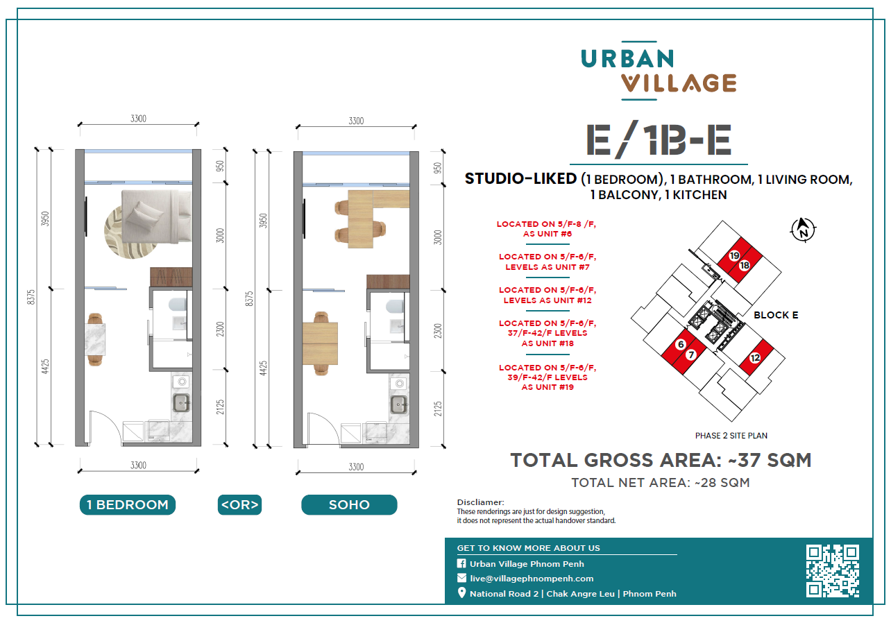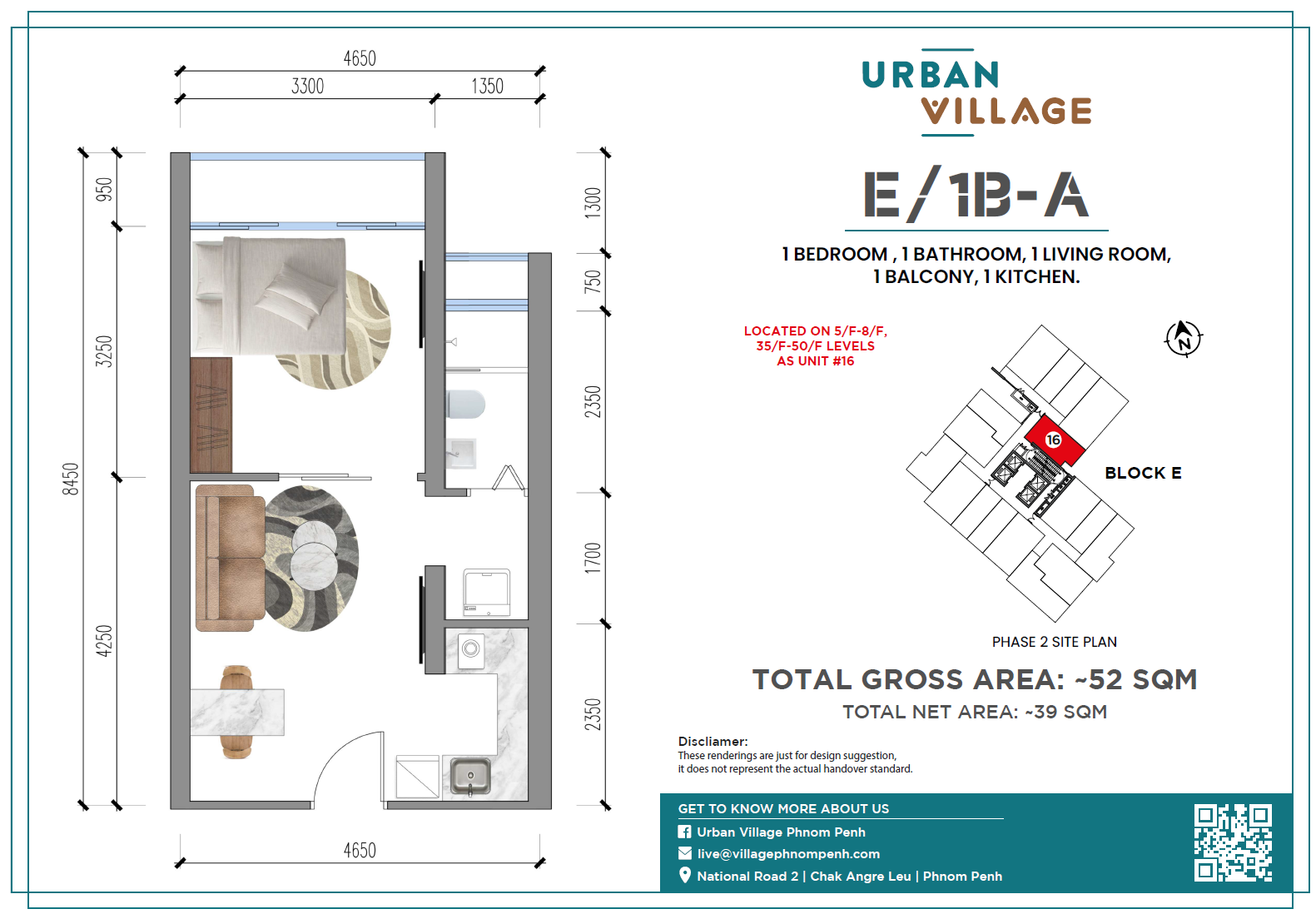 | 1 Bedroom | 1B-A | 39 | 12 | USD98,858 |
