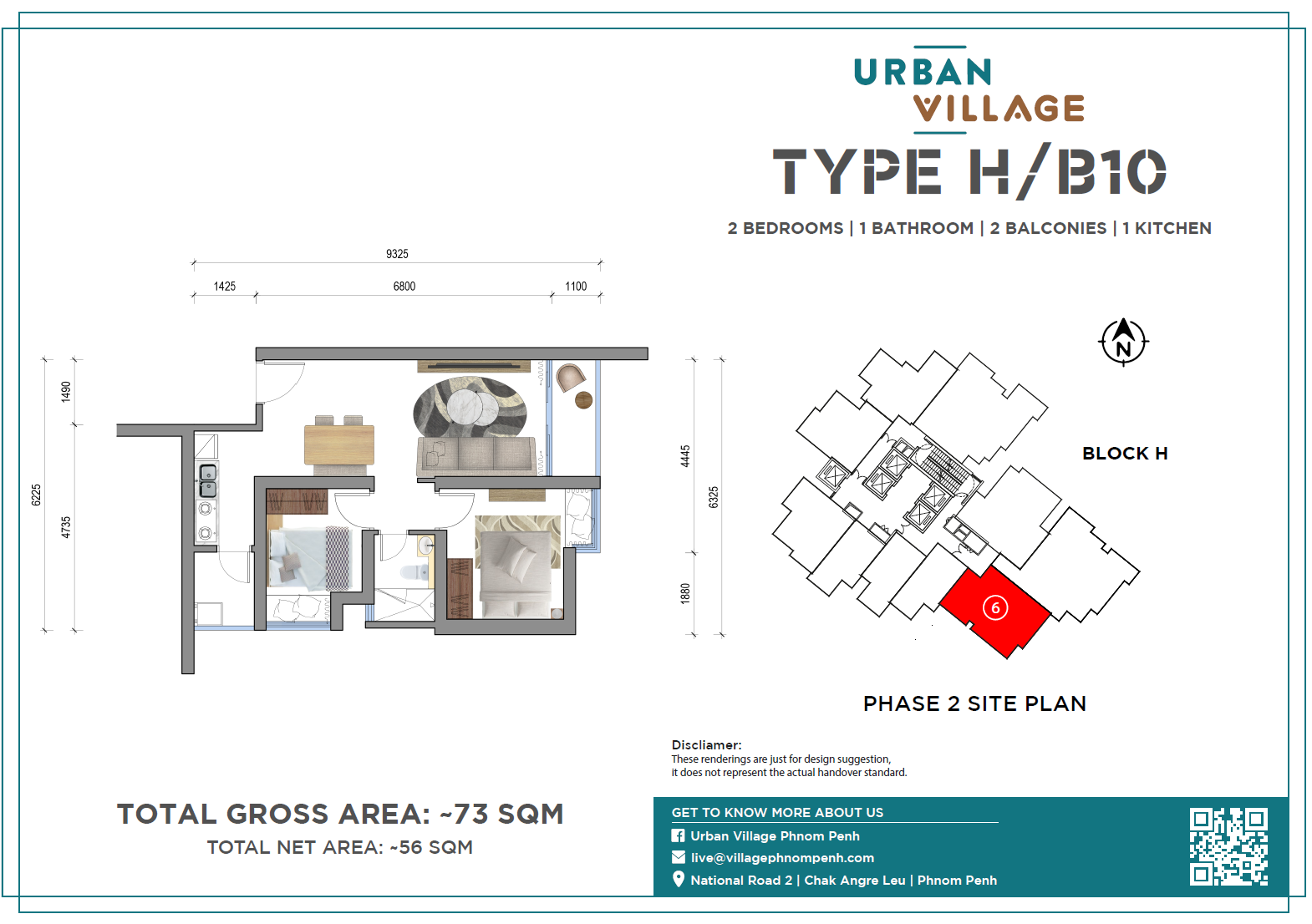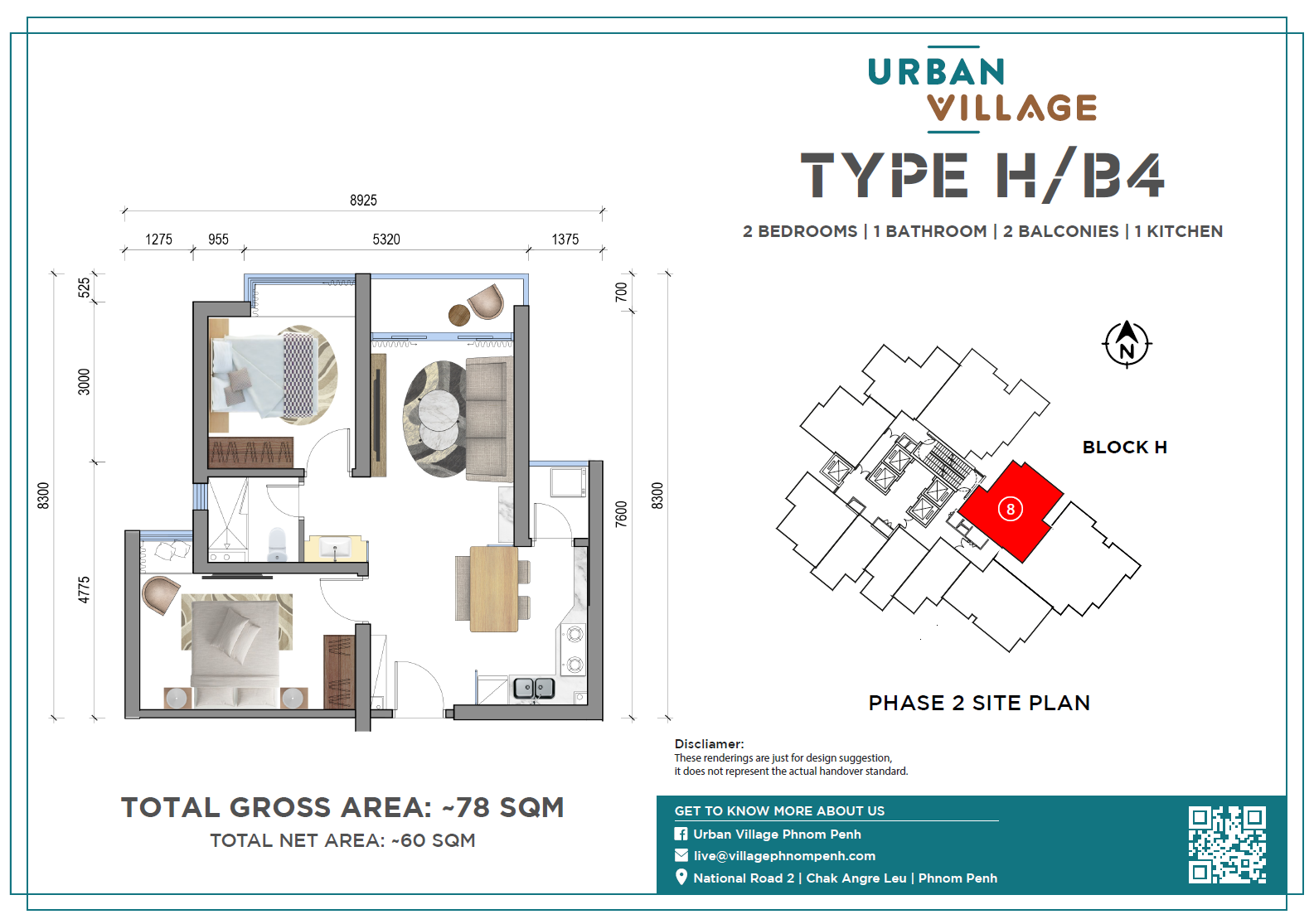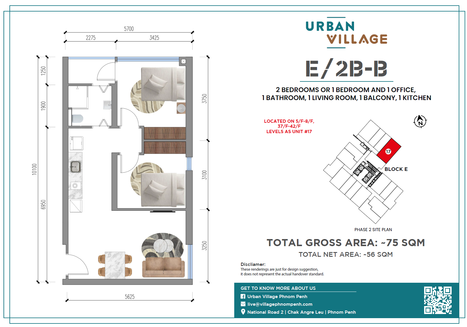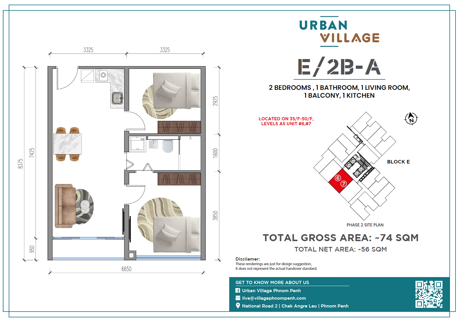 | 2 Bedrooms | 2B-A | 46 | 25 | USD113,333 |