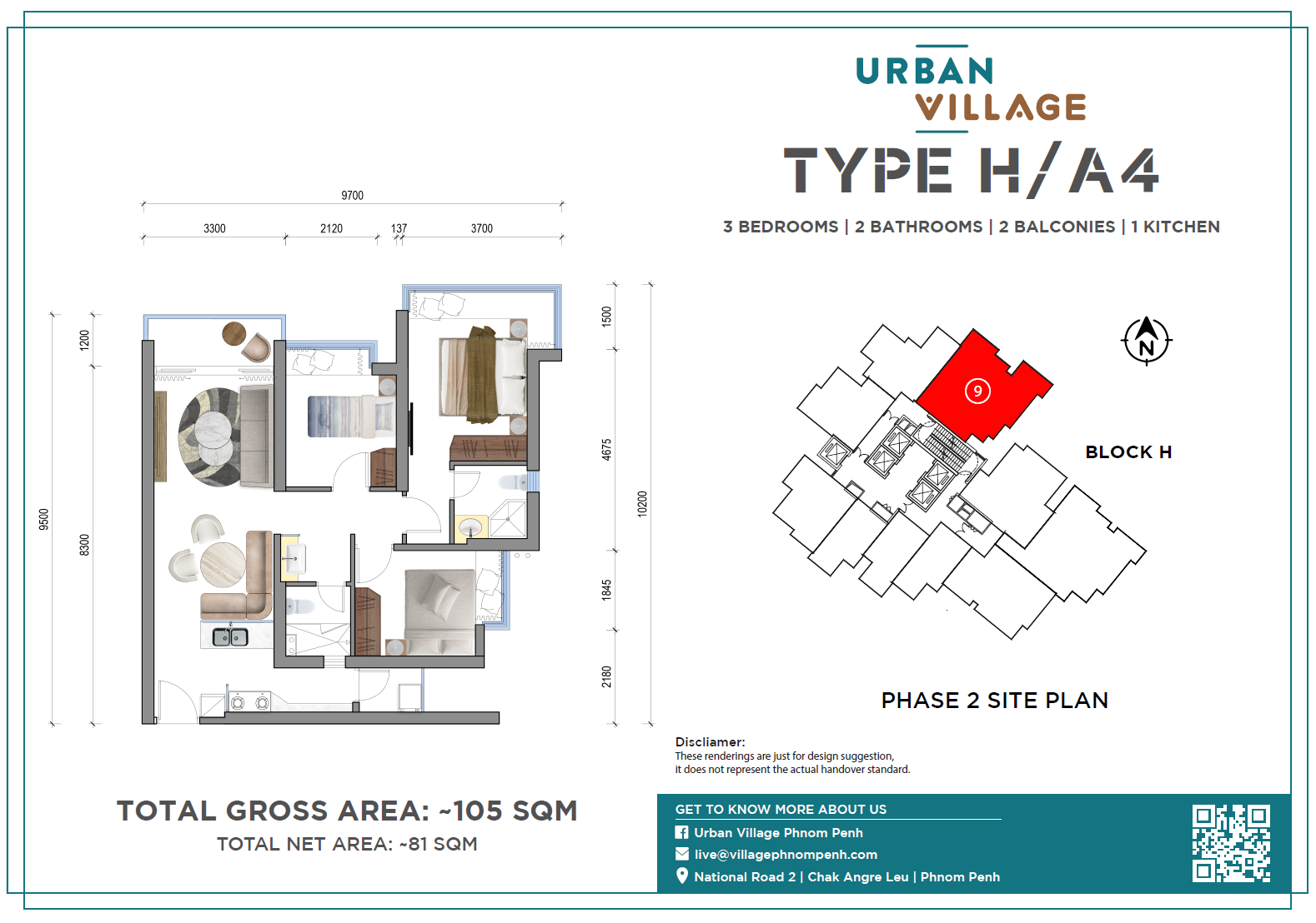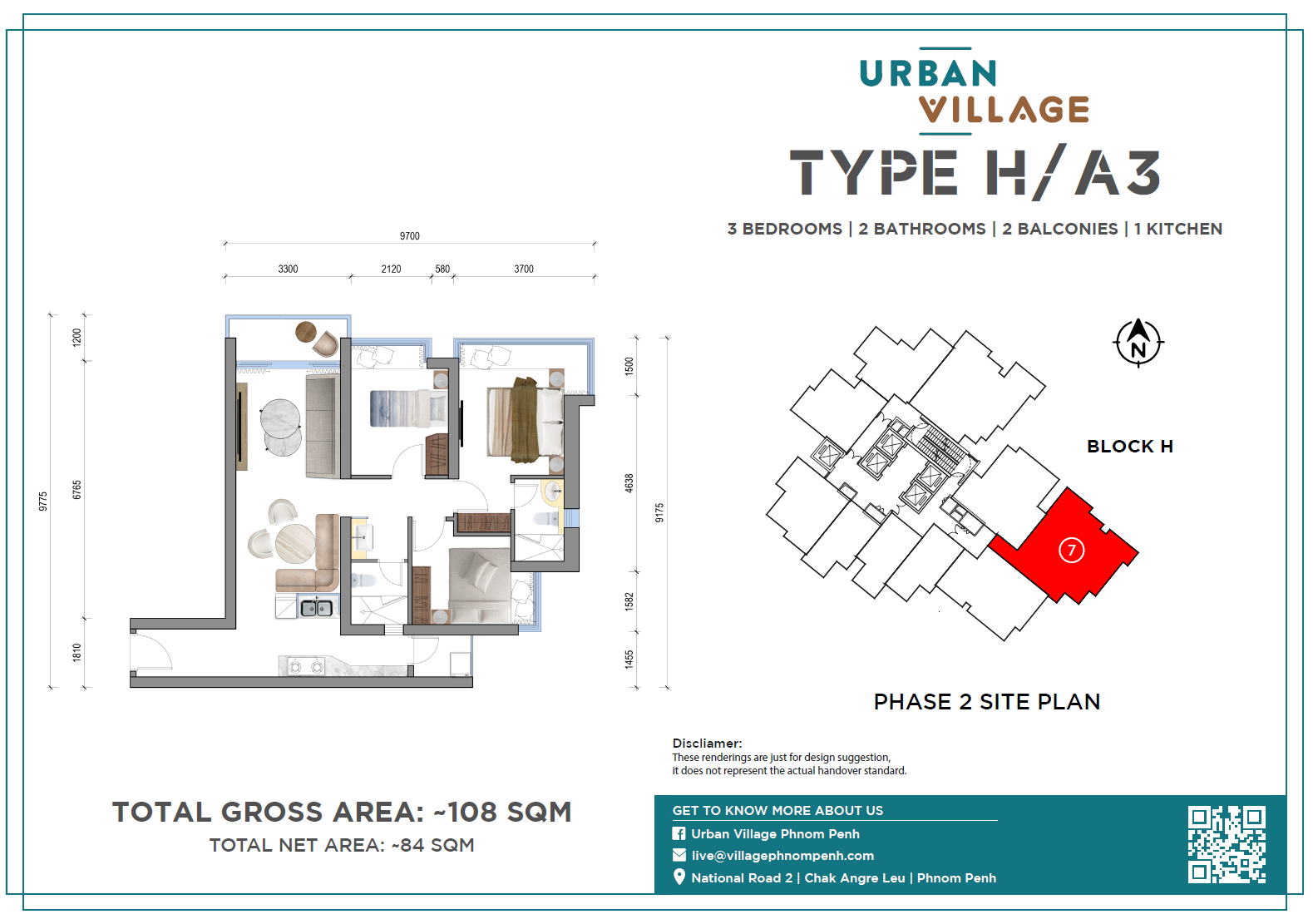 | 3 Bedrooms | A3 | 84 | 7 | USD216,691 |